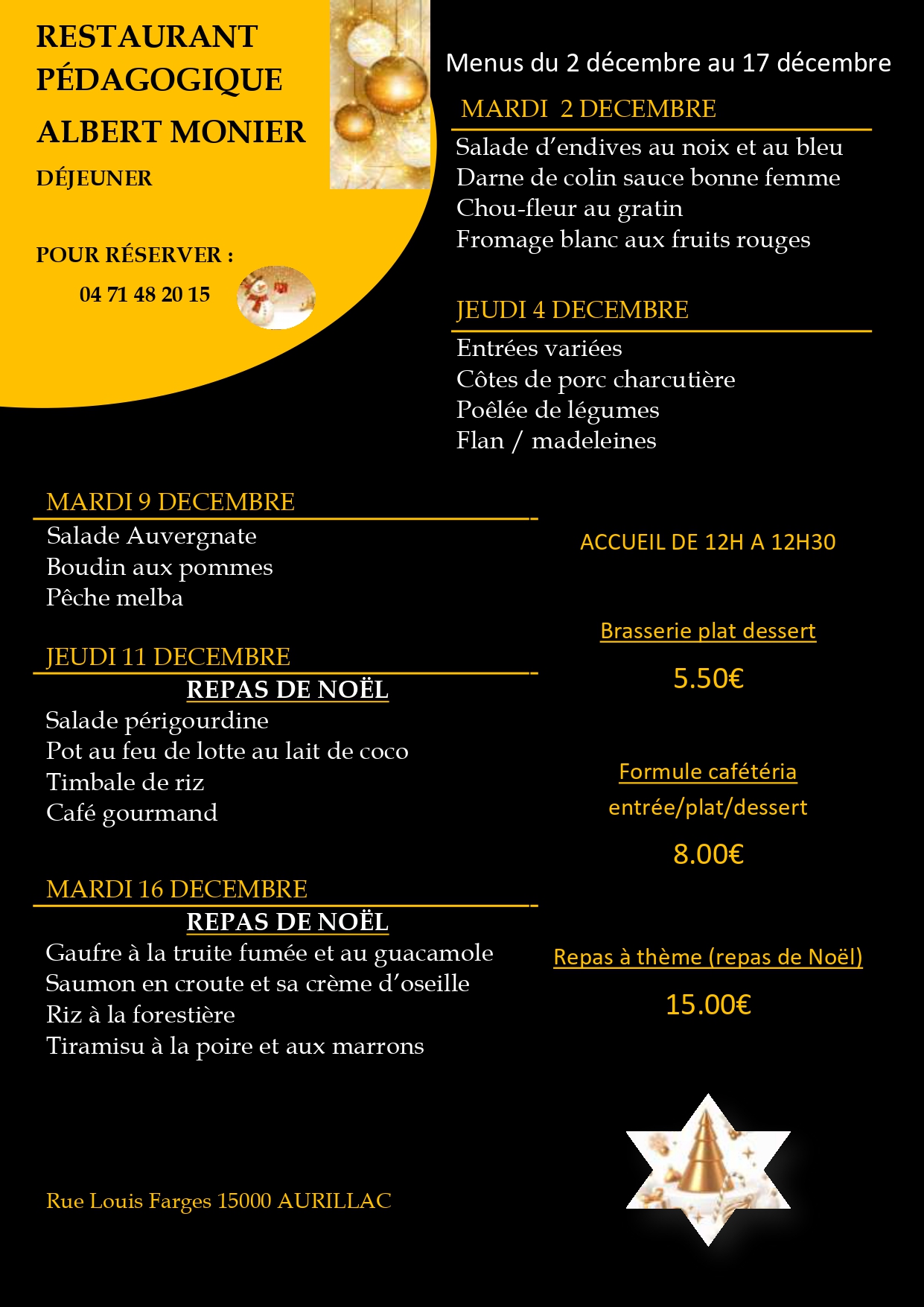 Restaurant d'application ouvert le mardi et le jeudi midi