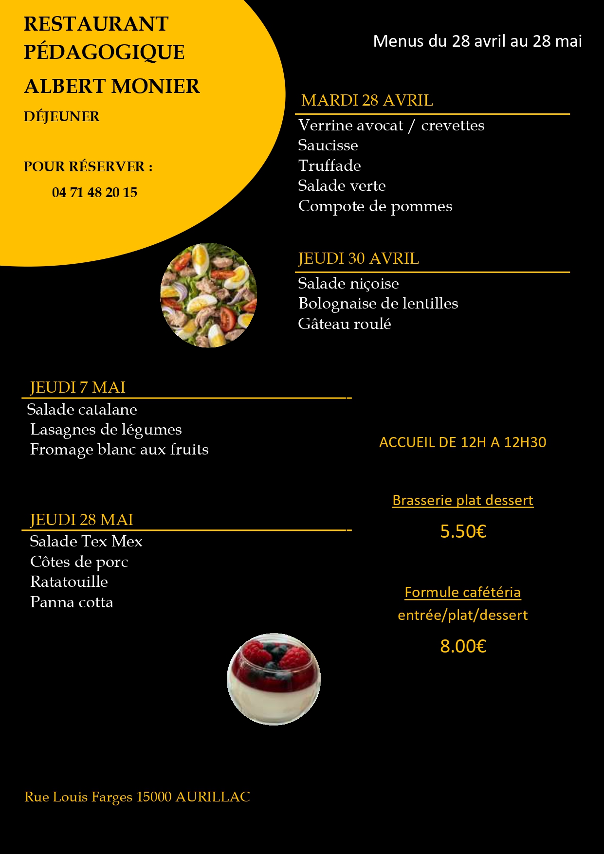 Les élèves de CAP production et service en restaurations vous attendent au restaurant pédagogique. Pensez à réserver au 04 71 48 20 15